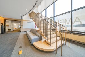 The comprehensive build-out included a striking new decorative staircase and elevator, a newly crafted custom storefront, textured ceilings with GRFG panels and light coves, and exquisite mosaic floor tiling, all complemented by stone wall paneling and elegant chandeliers to reinforce the brand’s refined identity. Structural enhancements included a new rooftop and upgraded mechanical systems, ensuring that the space is both technologically advanced and visually distinguished.