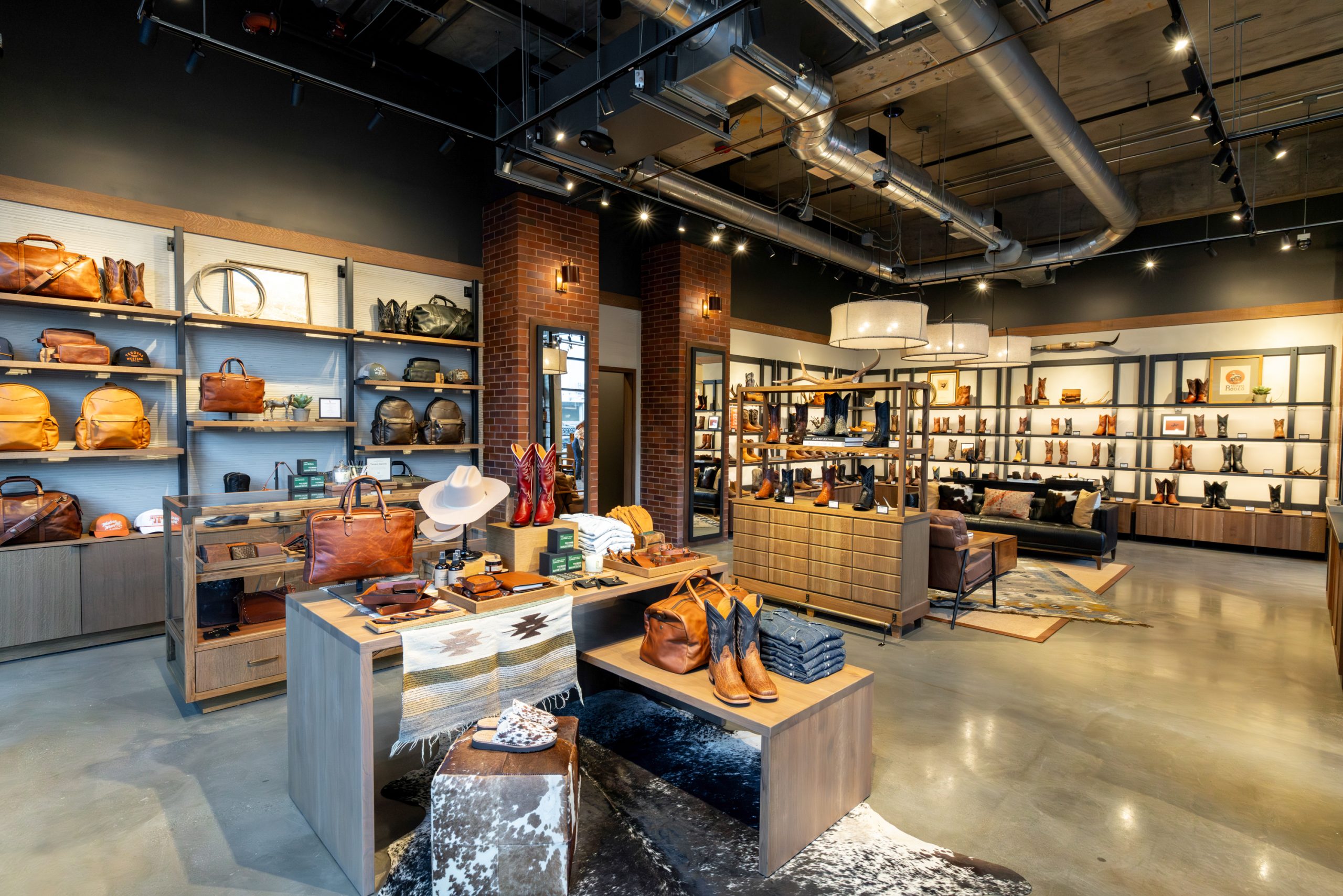 Distinctive elements, including a custom art wall, neon signage, a boot-shine station, and a hat steamer, enhance the in-store experience and bring Tecovas’ brand story to life. The completed project reflects JRM’s expertise in delivering immersive retail environments tailored to each brand’s unique identity.